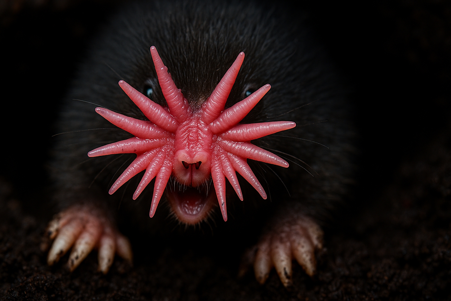 This creature looks like it was designed by a committee of science fiction authors. The Star-Nosed Mole, which lives in the dark, wet, marshy ground of North America, has a “nose” that has mutated into something truly alien: 22 fleshy, pink, tentacle-like appendages that form a “star” at the end of its snout. This bizarre star is not for smelling; it’s a sensory organ of unbelievable sensitivity and speed.