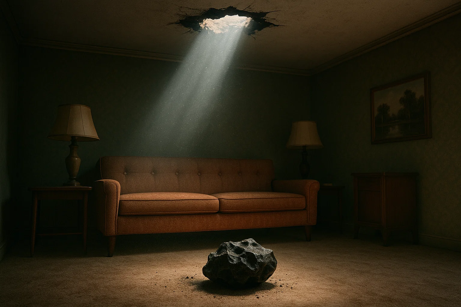 She awoke in a cloud of dust and debris, confused and in pain. Something had crashed through her roof, ricocheted off her large console radio, and struck her on the hip. The object was a black, 8.5-pound rock. But it was not from this Earth.
