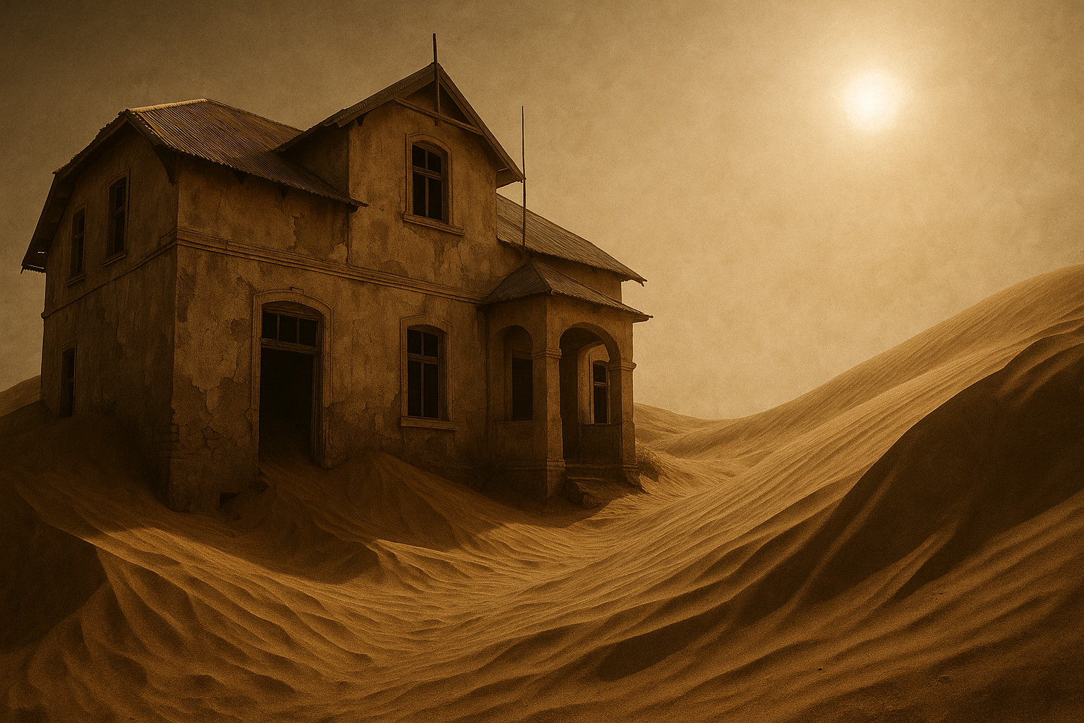 The abandonment wasn’t sudden or truly mysterious in terms of why (economic collapse). However, the mystery lies in the town’s rapid and dramatic transformation as the desert immediately began its silent invasion. Homes are now half-filled with sand, dunes creep through doorways and windows, and the once-lavish buildings are slowly being swallowed. The visual effect of a European town being consumed by one of the world’s oldest deserts is profoundly eerie and mysterious, prompting contemplation on the ephemeral nature of wealth and human endeavor in the face of overwhelming natural forces.