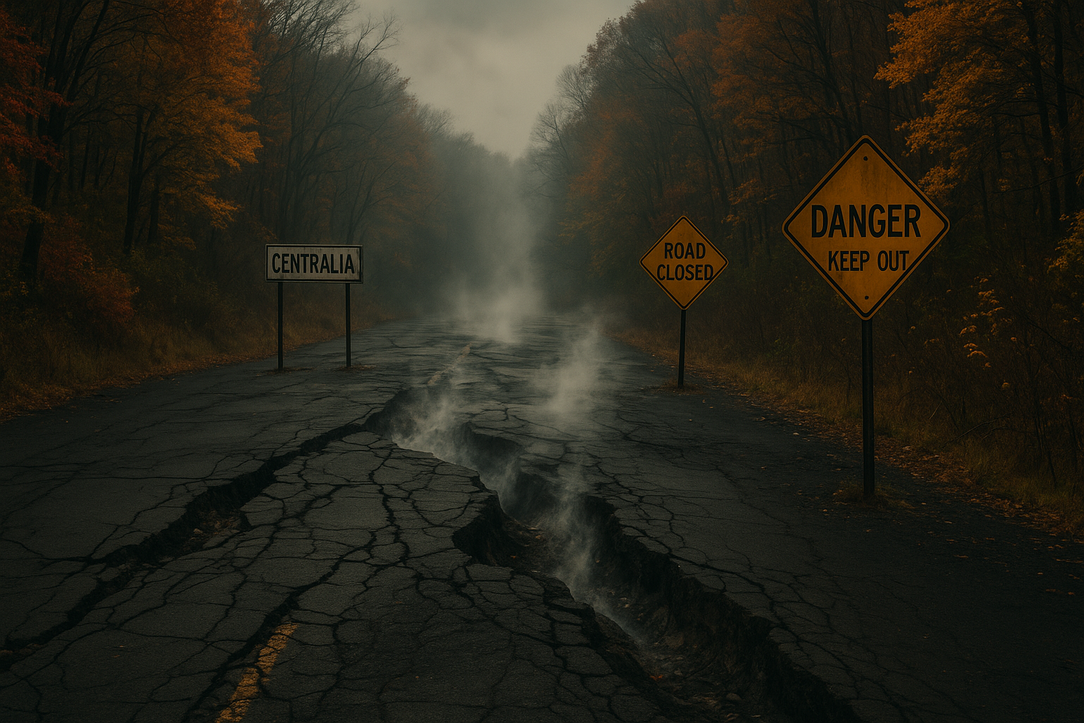 Centralia is not a town abandoned due to sudden disaster above ground, but by a slow, creeping catastrophe beneath it: an underground mine fire that has burned for decades.