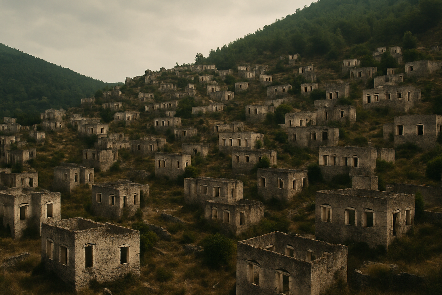 The reason for the abandonment is a clear historical event – the forced population exchange. However, the mystery lies in the profound sense of loss and the enduring, silent presence of empty stone houses built side-by-side, overlooking the valley. The scale of the forced departure, leaving behind a near-complete village, creates a haunting atmosphere. Turkish Muslims sent from Greece were later settled in the area but found the stone houses unsuitable for their lifestyle and built new homes lower down the valley, leaving the old town deserted. The “mystery” is less about the cause and more about the poignant human story of a vibrant community’s sudden, forced displacement and the eerie silence of the homes they left behind.