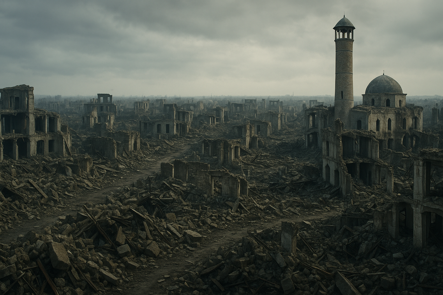 The cause of abandonment was war and deliberate destruction. The “mystery” and haunting aspect come from the town’s almost complete erasure, leaving behind a vast area of rubble with only a few structures, most notably the partially ruined mosque, still standing as skeletal remains. It’s a ghost city created not by nature or simple economic decline, but by intentional human violence and strategic devastation. The sheer scale of the destruction and the emptiness of a once-thriving city are profoundly unsettling.